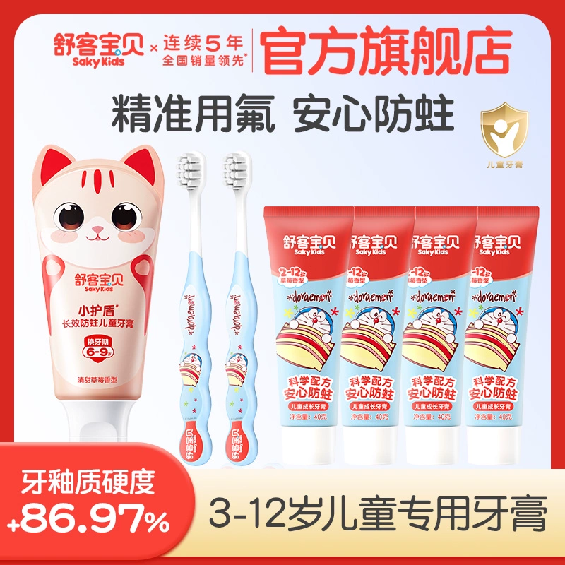 ¥19.9 5支牙膏+2支牙刷!舒客宝贝小护盾儿童牙膏 69.9