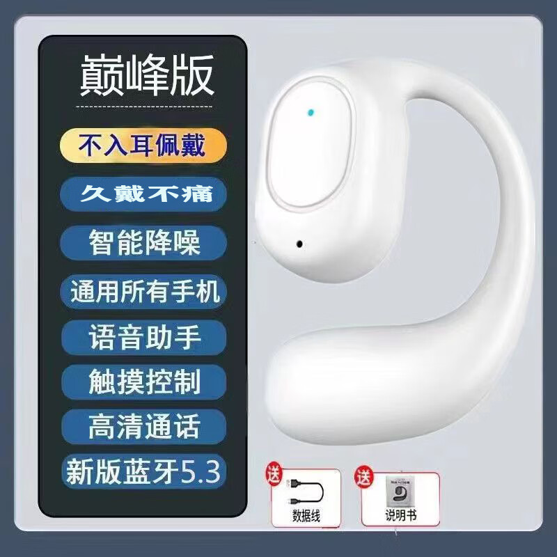 ¥20.9 新款无线蓝牙耳机53耳夹耳式不入耳跑步运动游戏超长续航耳机 G01白色 袋装+充电线+说明书 50.9