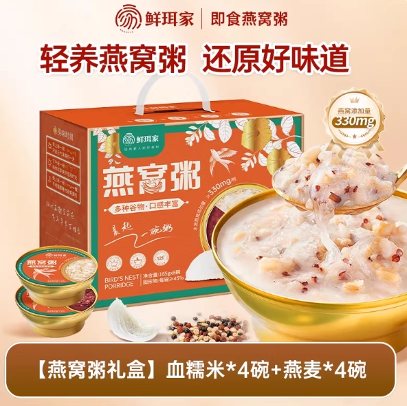 37.5元包邮!鲜珥家燕窝粥礼盒 165g*8碗