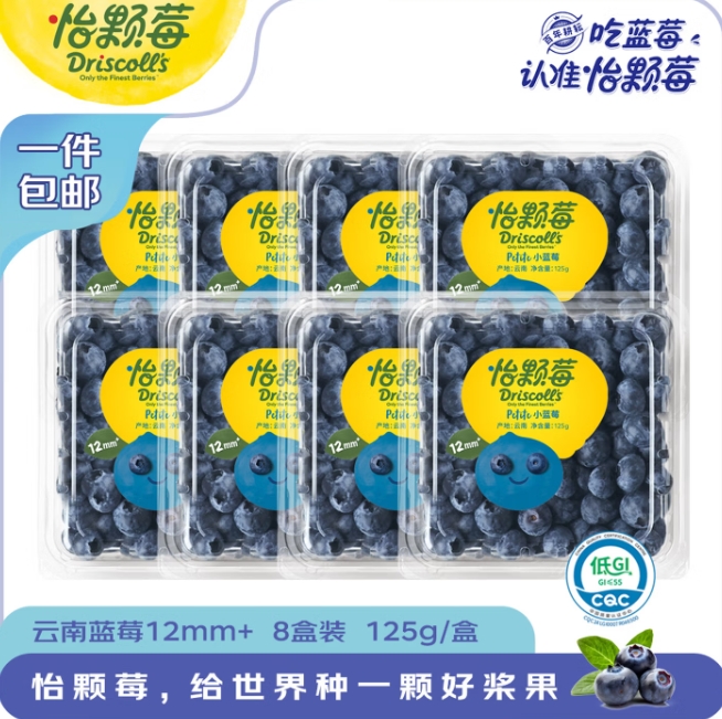 88.2元!怡颗莓 云南蓝莓12mm+8盒装约125g/盒