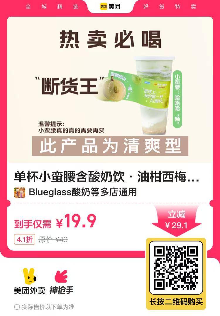 【美团外卖】19.9元!Blueglass酸奶|油柑西梅青苹果
