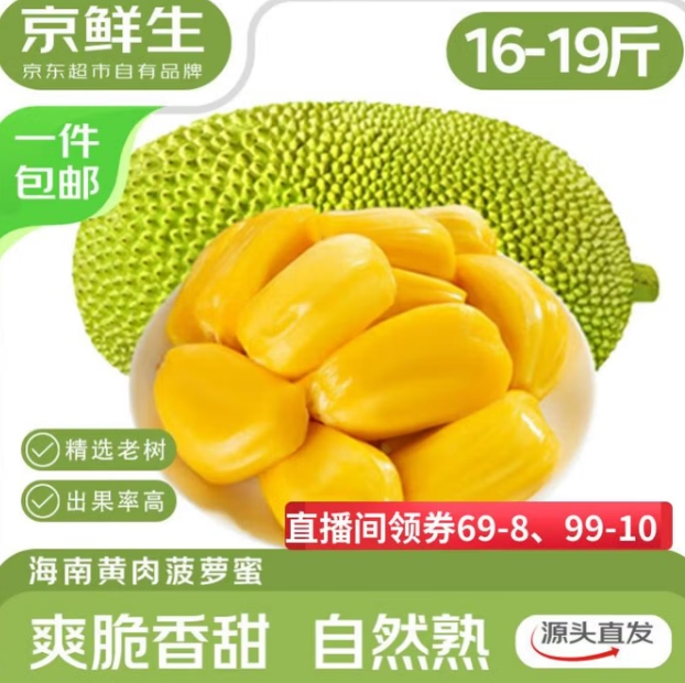 63.6元包邮!京鲜生 海南老树菠萝蜜 16-19斤装