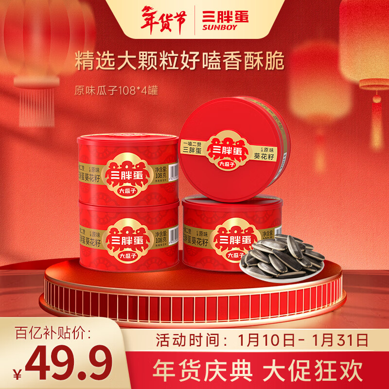 三胖蛋 葵花籽瓜子108g*4罐 到手39.69元