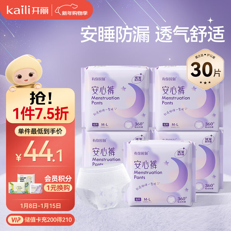 开丽安睡裤M-L码6片*5包优惠券后价