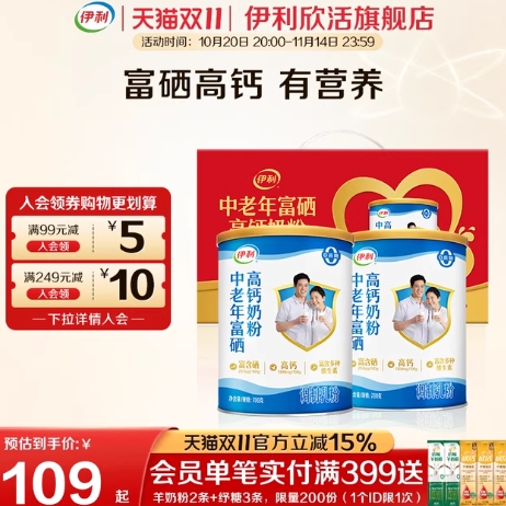 60.5元包邮!伊利欣活中老年奶粉 400g*3袋