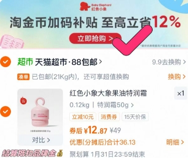 在售价49元,领15元券,商品页价格下拉详情页-抢淘金币点进去拍,叠凑单3件一起,叠淘金币+3元品牌金,折主商品9.8元;