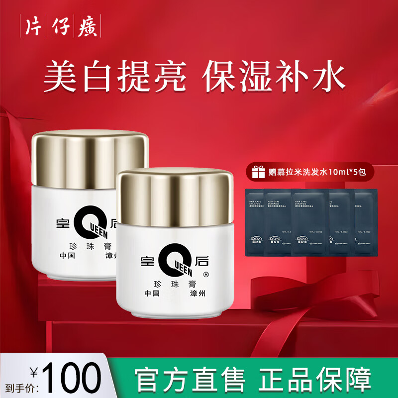 ¥99 片仔癀【官方直售】皇后牌珍珠霜膏美白祛斑面霜提亮肤色滋润补水男女士 (实惠装)珍珠膏20g*2瓶 100