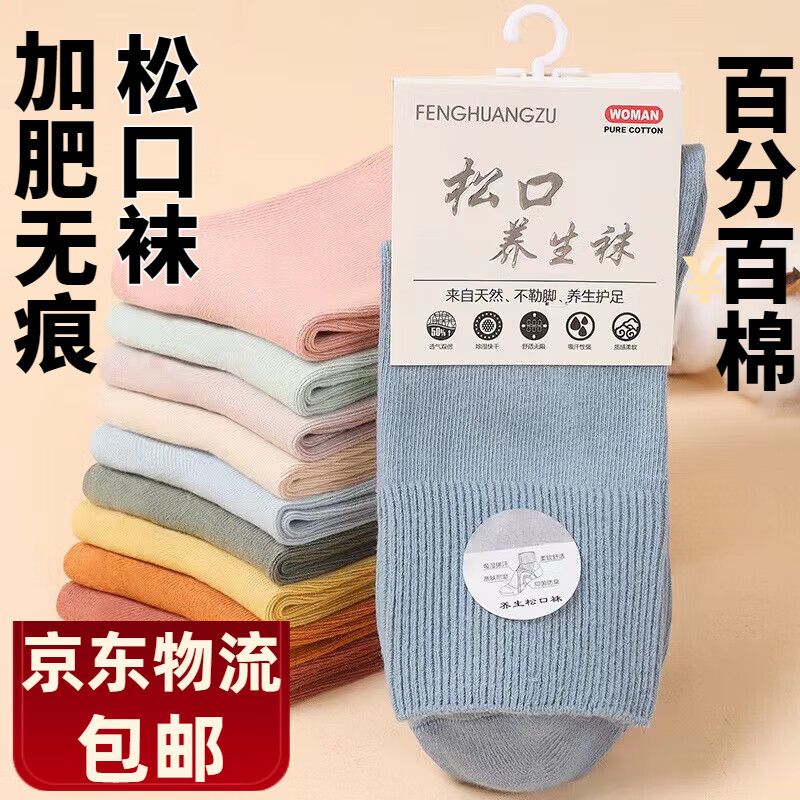 ¥22.15 老人袜子松口袜男女夏季薄款宽松加肥不勒纯脚棉月子袜7 混搭随机发 5双 均码 女35-40无骨松口 23.15