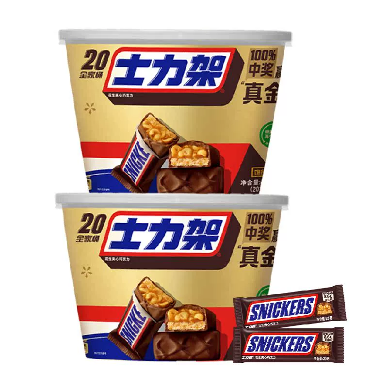 ¥61.8 德芙士力架花生夹心巧克力400g*2桶能 65.8