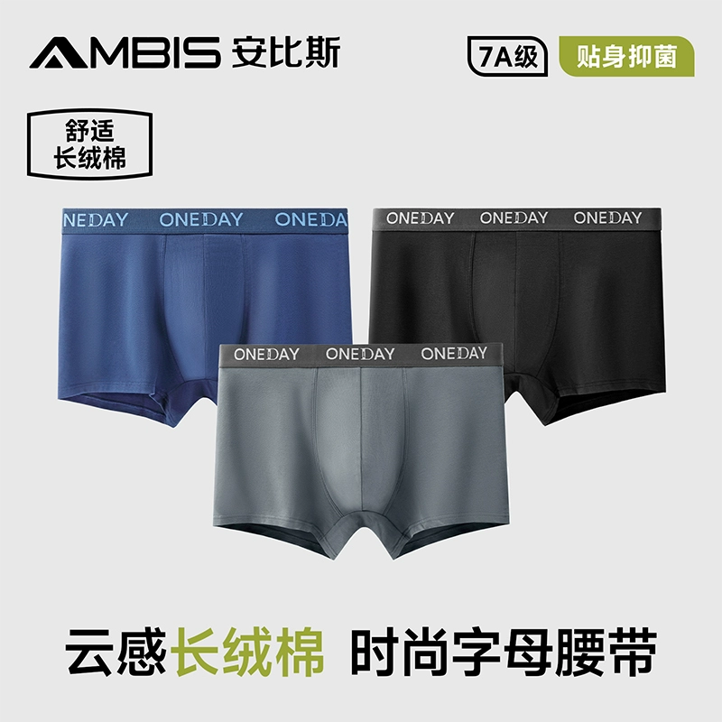 ¥29.9 安比斯!男士长绒棉抗菌内裤3条 49.9
