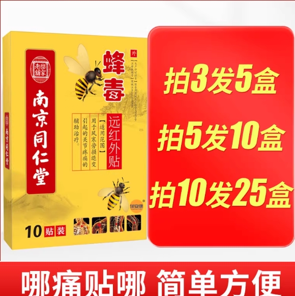 12.9元包邮!南京同仁堂 蜂毒膏药贴10片