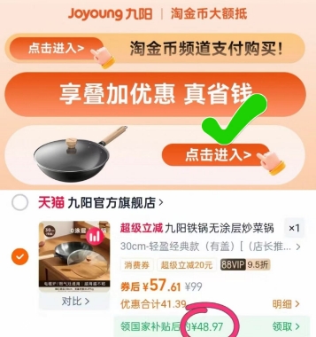 拍有盖30cm选项 售价99元,领国补+下拉详情页拍,实付48.9元包邮;