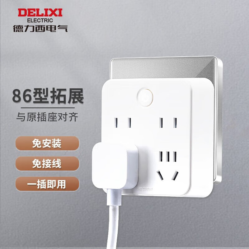 ¥15.9 德力西(DELIXI)排插/插座/家用墙壁电源插座 宿舍神器魔方插座 分控一转多桌面圆盘插座 【86型】一转四 总控 25.9
