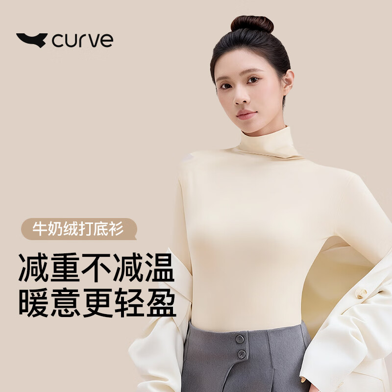 ¥36.9 曲线主义牛奶绒打底衣秋冬保暖内衣女轻薄蓄暖锁温打底衫塑形显瘦 卡其色 均码 (80-130斤) 59.9