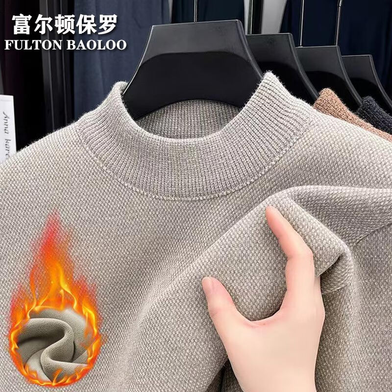 ¥52.9 FULTON BAOLOO 富尔顿保罗毛衣男士秋冬季新款加绒保暖纯色针织衫中青年半高领百搭打底衫潮 米白色 M (建议100到120斤穿) 109.9