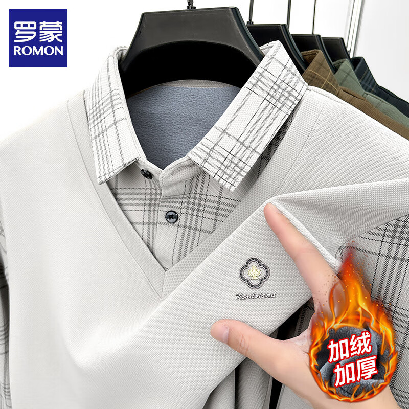 ¥119 罗蒙(ROMON)加绒假两件毛衣男冬季新款保暖厚款衬衫领男士针织打底衫上衣 米白 加绒 XL (175) (建议体重130-150斤) 149