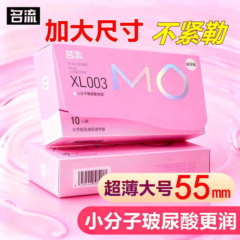 ¥49 名流mo避孕套大号55mm超薄003玻尿酸润滑安全套加大XL码男女用套套byt MO超薄XL003大号10只 59