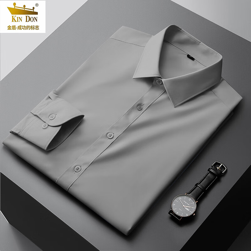 ¥48.9 金盾男士长袖衬衫2024春秋新款莫代尔衬衣装 灰色 2XL 129.9