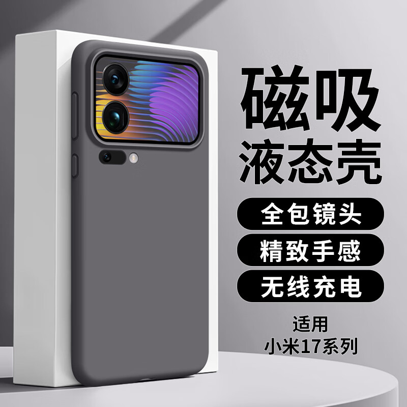 ¥58 倪希磁吸适用小米17手机壳17pro新款17promax手机套xiami无线充电外壳15液态15spro硅胶14保护壳纯色 碳灰色支持磁吸充电 小米17Pro 68