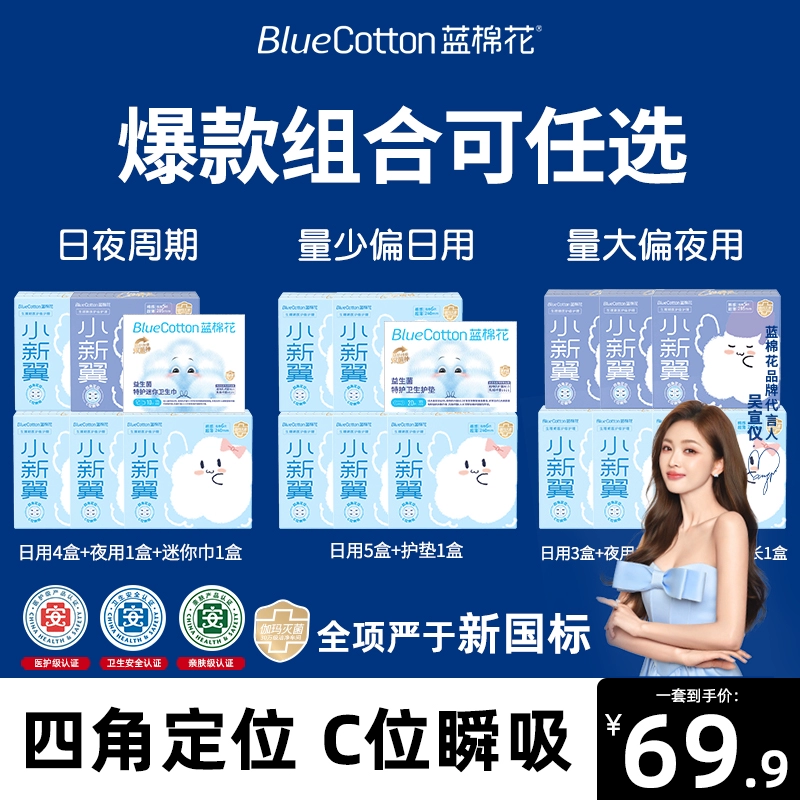 ¥29.9 蓝棉花卫生棉组合!! 69.9
