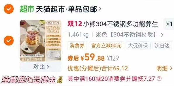 1、天猫超市 搜“小熊”领5元品牌金