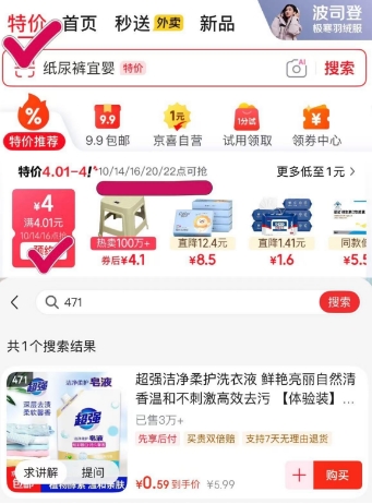直播间右上角领红包+观看+福袋红包拍,低至0.01元!超强洗衣液2斤