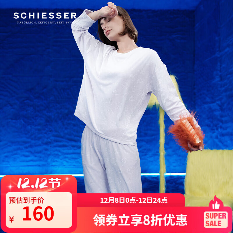¥111.2 舒雅(Schiesser)女士厚款绒感压花吸湿透气圆领长袖长裤睡衣家居服套装E1/23292H 粉紫 L 139