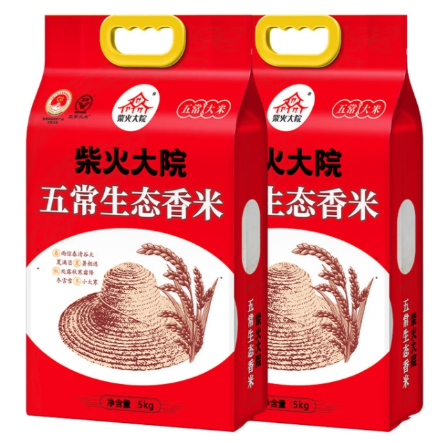 70元包邮!柴火大院 五常生态香米5kg 2袋装
