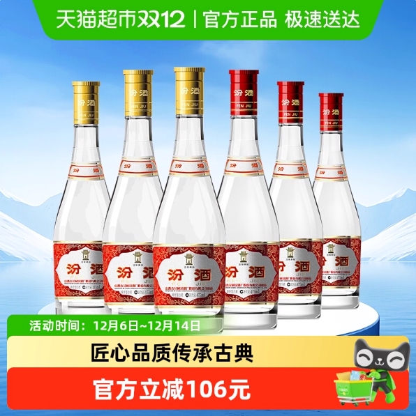 208.9元包邮!汾酒 组合 42%Vol.+53%Vol. 清香型 475ml*6瓶