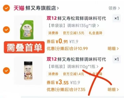 先领13元券,收藏不拍-1.领卷加购11.9元选项1件-2.再凑原价10.9元选项1件,选择“支持多个地址收货”把不要的 设置另一个地址,折好价到手