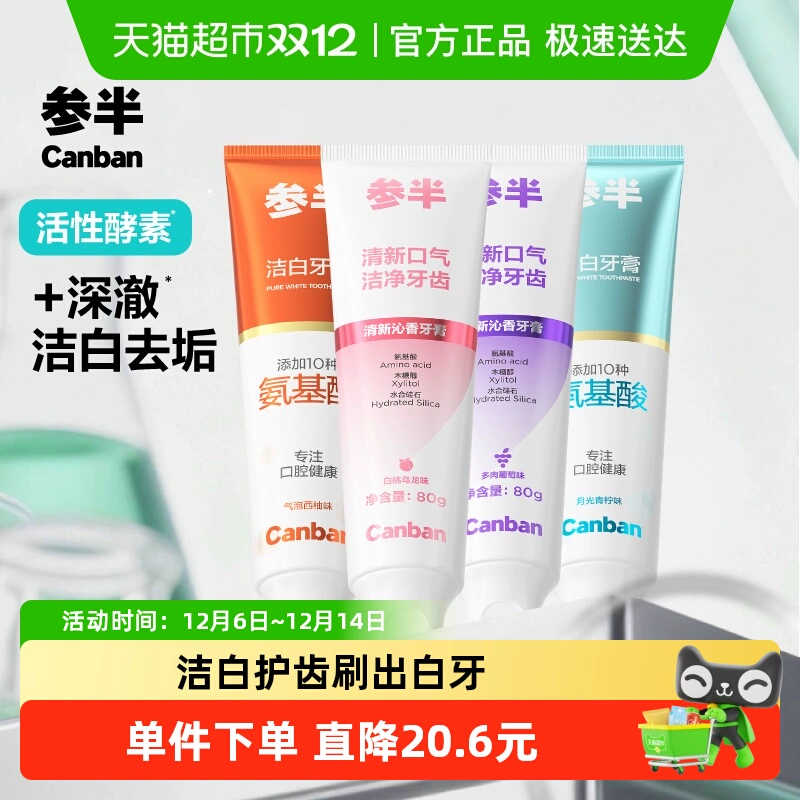 ¥23.2 抢!参半牙膏清新洁白牙齿囤货装 53.2