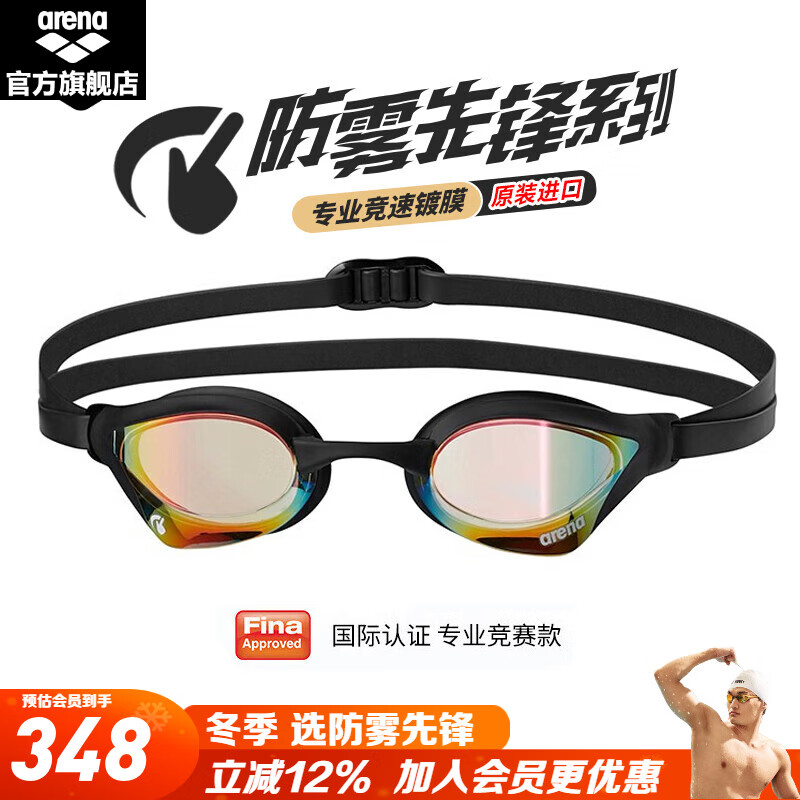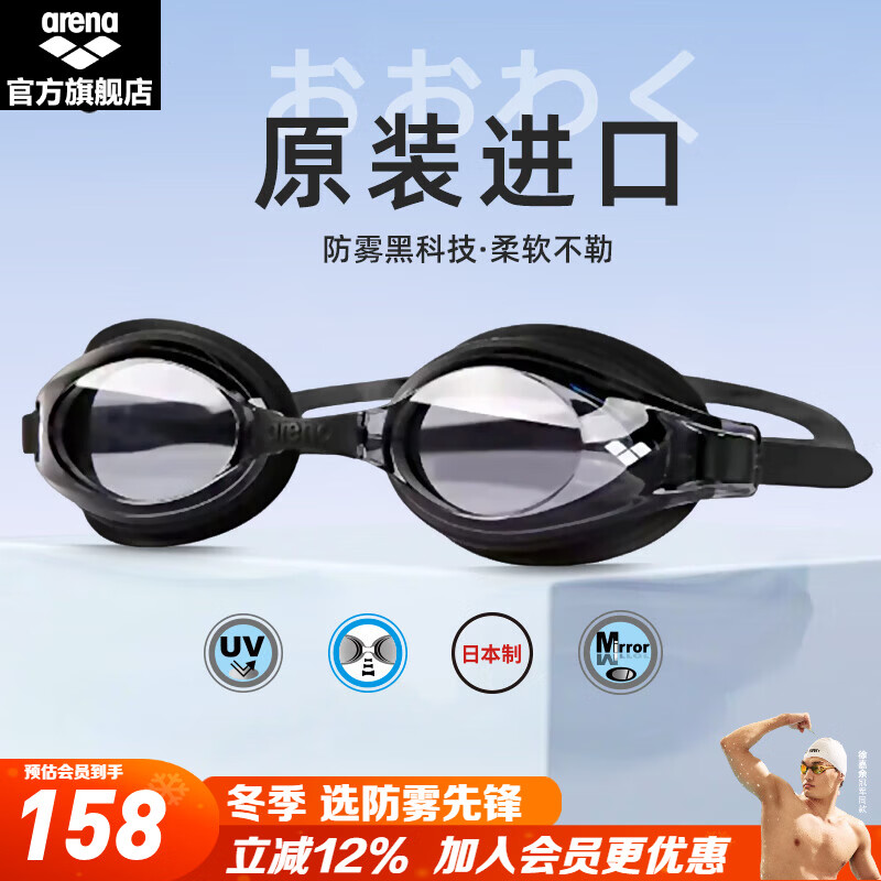 ¥377.52 阿瑞娜(arena)进口持久防雾泳镜防水镀膜游泳眼镜男女士竞技专业游泳镜防雾先锋 黑色(进口防雾先锋) 429