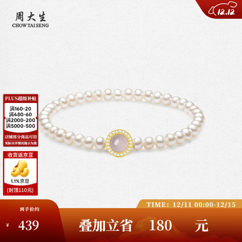 ¥589 周大生【圣诞礼物】红玉髓珍珠项链女淡水珍珠手链套装送女友 珍珠手串 619