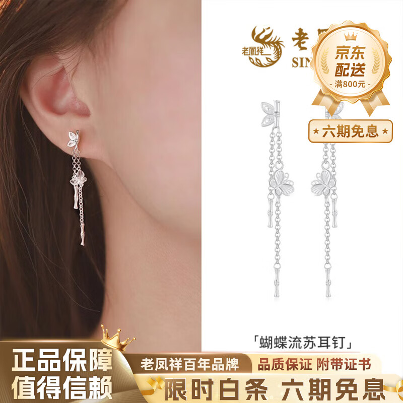 ¥110 老凤祥纯银竹节流苏蝴蝶耳钉耳环女新款养耳洞生日纪念日礼物送女友老婆 999银*竹节流苏蝴蝶耳钉【品牌礼盒】 130