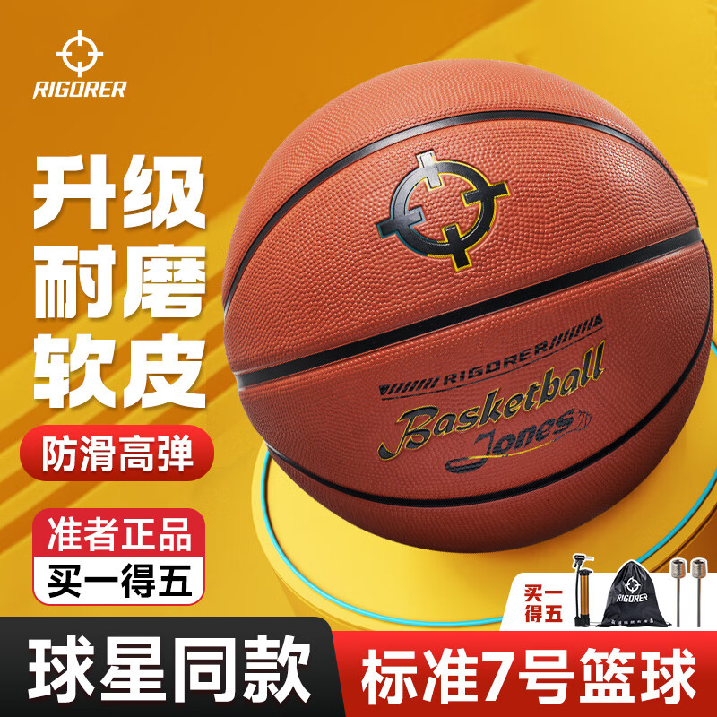 ¥44.9 准者里弗斯同款成人篮球橡胶室外水泥地耐磨比赛训练专用中学生7号球 7号120-7棕色【京仓发货 送全套配件】 54.9
