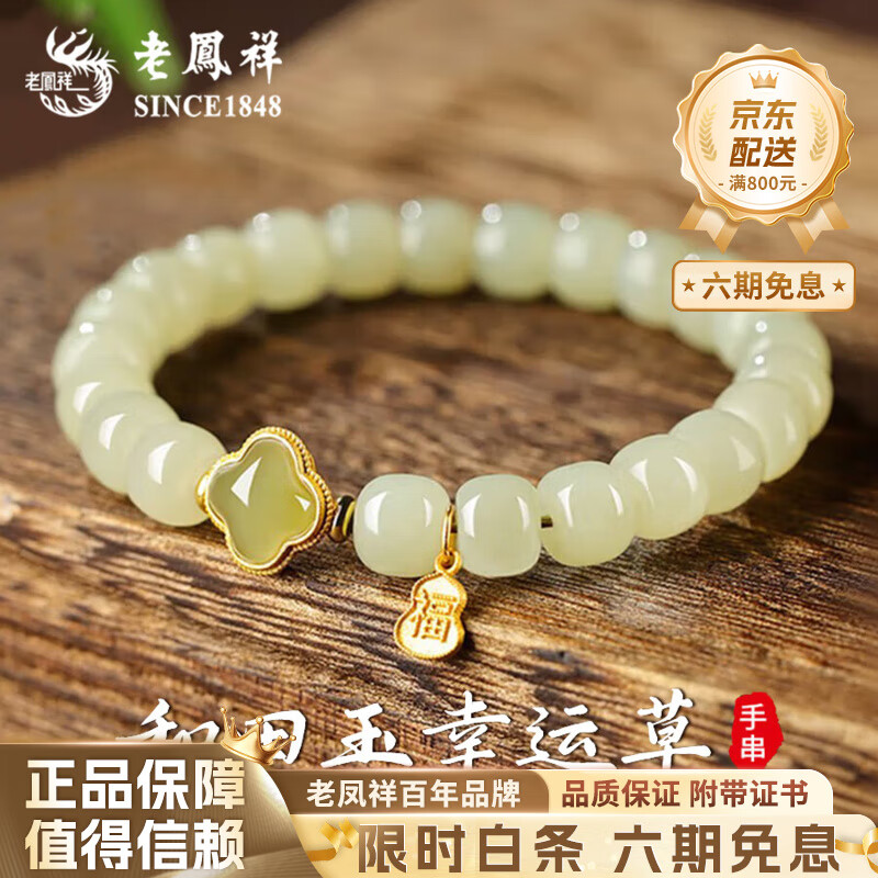 ¥299 老凤祥和田玉四叶草银手链女新款转运玉石手串手饰纪念日礼物送女友妈妈 6/7mm和田玉四叶草手串【品牌礼盒】 319