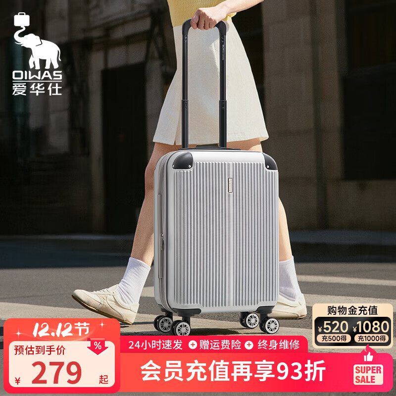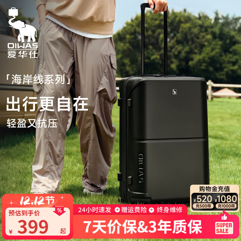 ¥745 爱华仕(OIWAS)海岸线系列大容量轻音旅行李箱皮箱密码箱航空箱可登机轻便耐用 6848拉链款曜石黑 28英寸 795