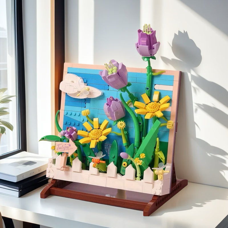 ¥29 哲高郁金香立体画创意积木拼装花卉办公室桌面小清新摆件家居装饰 郁金香桌面相框 49