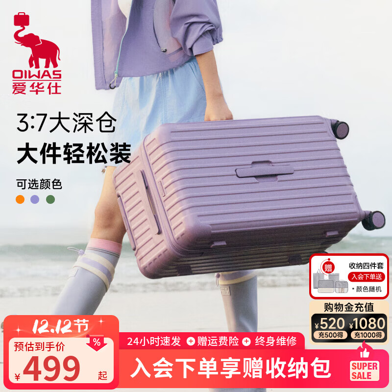 ¥858 爱华仕旅行者行李箱女26英寸三七开大容量托运拉杆箱密码男旅行箱 暮山黛紫 26英寸 908