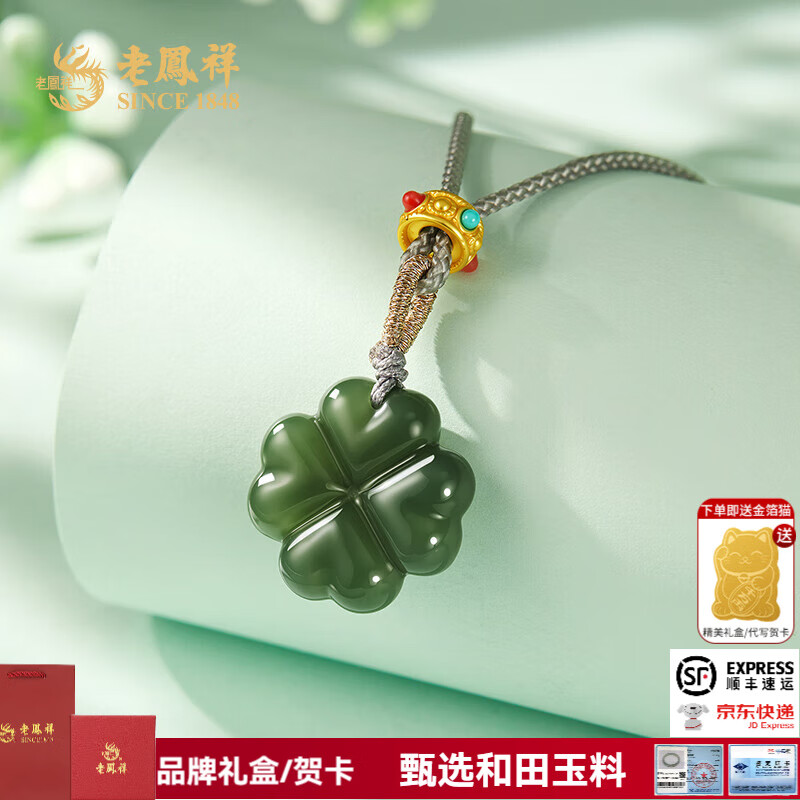 ¥149 老凤祥四叶草青玉和田玉吊坠玉坠送女友老婆纪念日生日礼物玉类首饰 四叶草青色和田玉吊坠 169