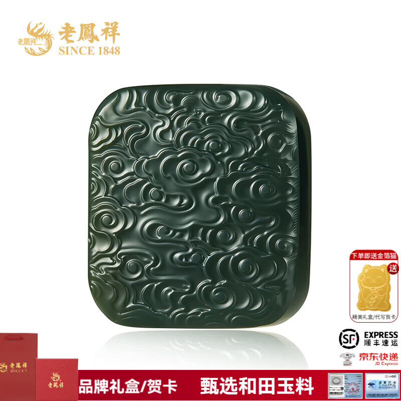¥109 老凤祥云纹和田玉平安无事牌吊坠送女友老婆纪念日生日礼物玉类首饰 和田玉云纹平安无事牌 129