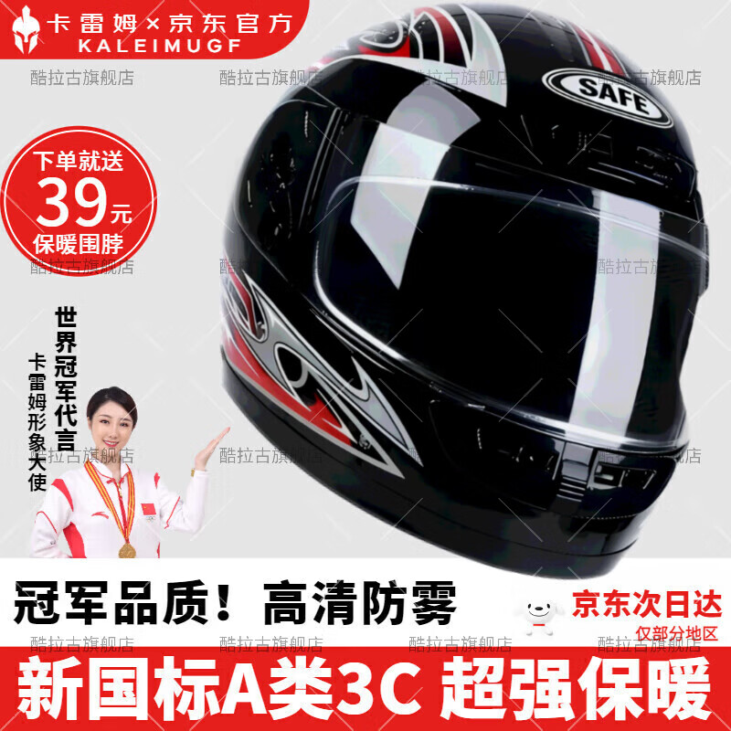 ¥60 卡雷姆头盔冬季防冻保暖男女3c认证防雾围脖款全盔包电动车摩托车电瓶机 亮黑【顶配款】+送可拆围脖+高清防雾 均码【新国标A1类-3C认证】冬季保暖防雾 98