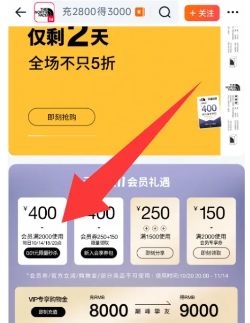 1、可0.1元秒2000-400元店铺券(每天10/14/18/20点可秒,到期未使用自动退)