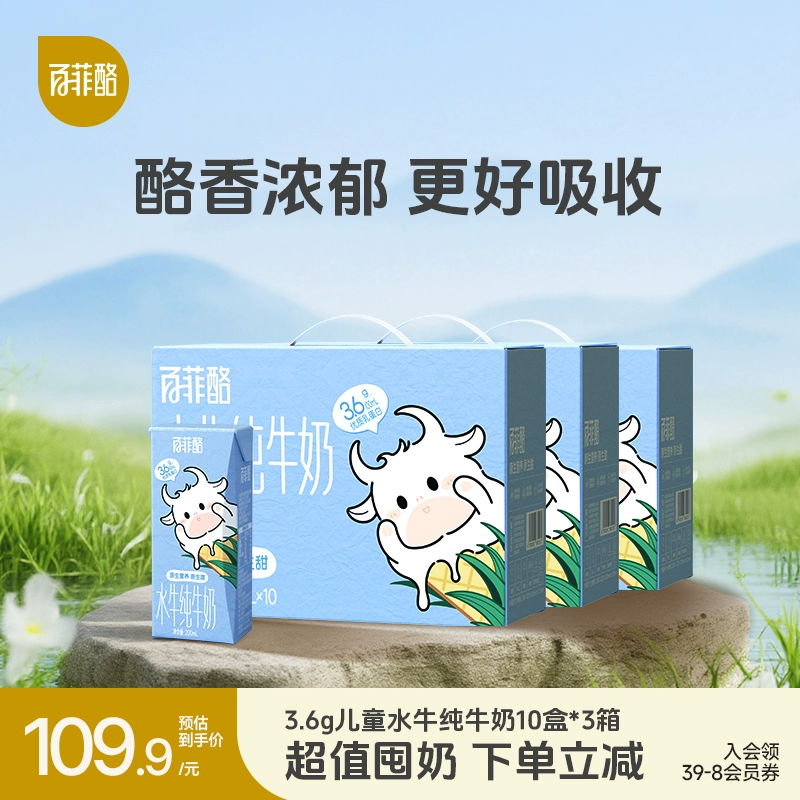 ¥49.5 【百补】百菲酪原生高钙水牛纯牛奶10盒 49.5