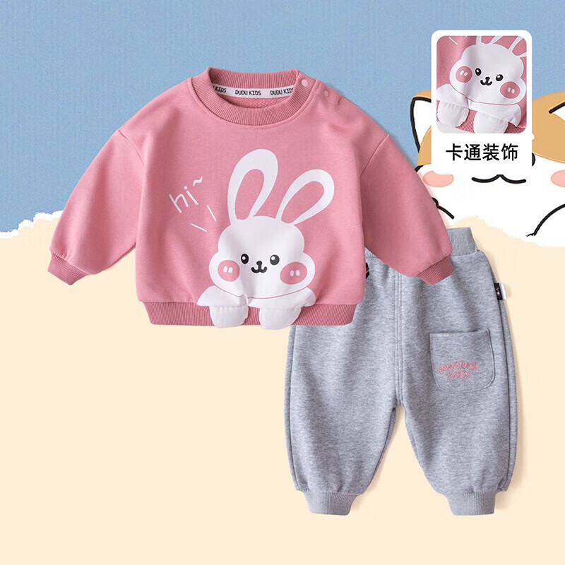 ¥111.3 嘟嘟家宝宝套装秋冬婴儿冬装男童衣服两件套冬季儿童童装女童wp 粉色兔子+灰色裤子 73 111.8