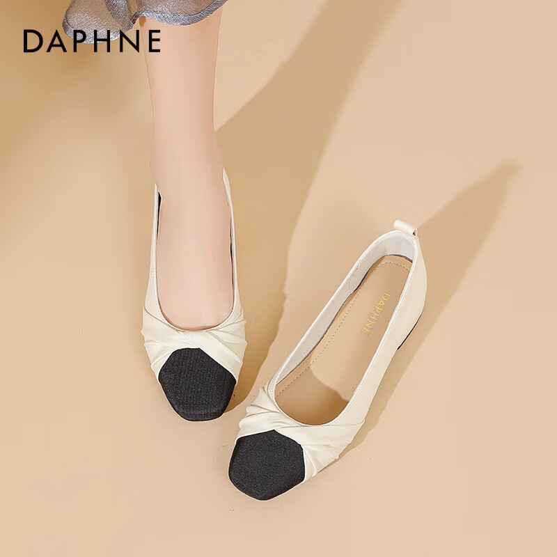 ¥89.9 达芙妮平底鞋单鞋女2025新款春季女鞋气质百搭豆豆鞋小香风晚晚鞋JD 米黑色 38 239.9