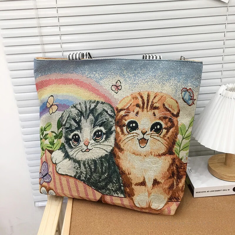 ¥20.9 【甄选百货】复古新绣花帆布包单肩包时尚女包可爱小猫简约大容量 001 50.9