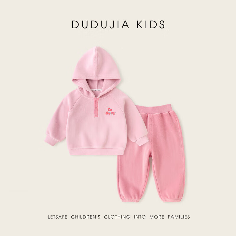 ¥117.5 嘟嘟家【抗静电】男童套装秋冬款宝宝衣服加绒女童卫衣洋气儿童长裤冬季 粉色 100 118