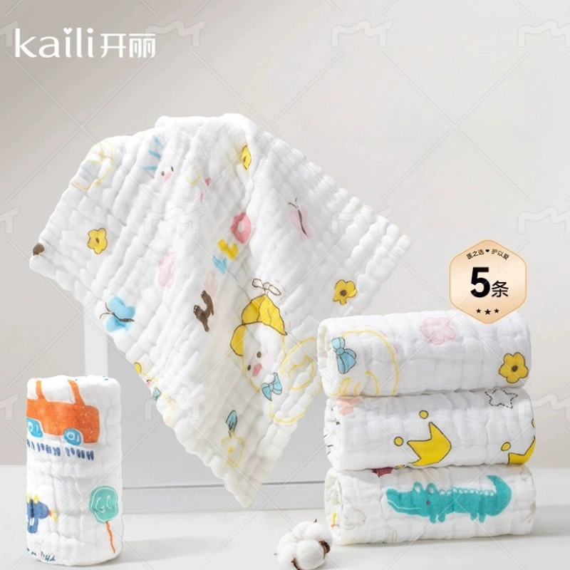 ¥15.9 开丽纱布巾婴儿洗脸洗澡拍嗝巾小方巾5条 16.9