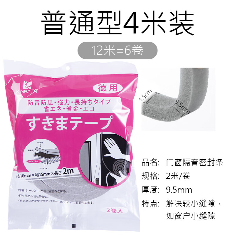 ¥19.9 kinbata窗户密封条门窗缝隙防风隔音贴门缝门底房门防噪音神器自粘型挡条 标准款 1.5cm*2米【3包共6卷】 29.9
